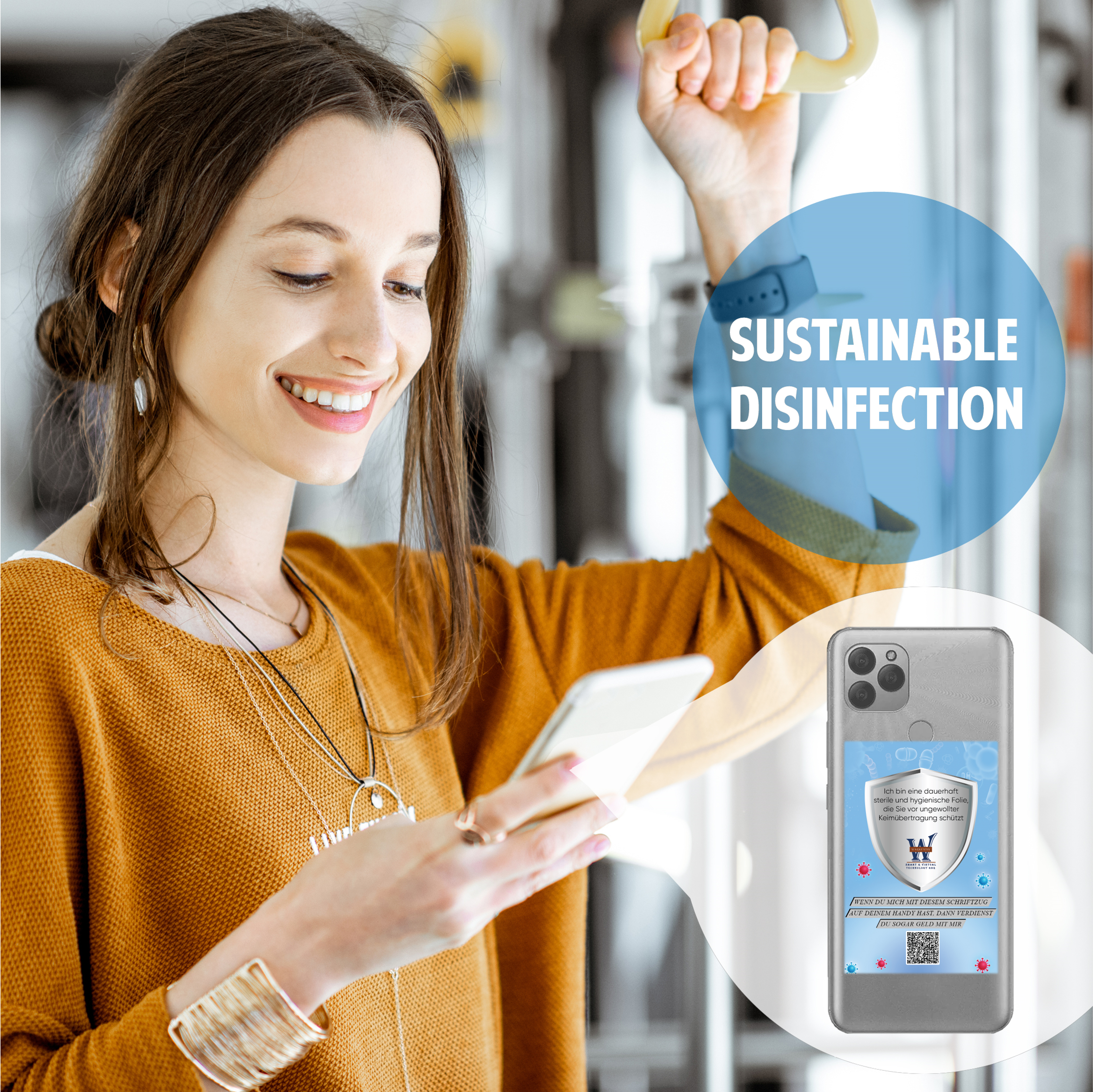 Handy Desinfektionsfolie mit Werbebanner + Affiliate